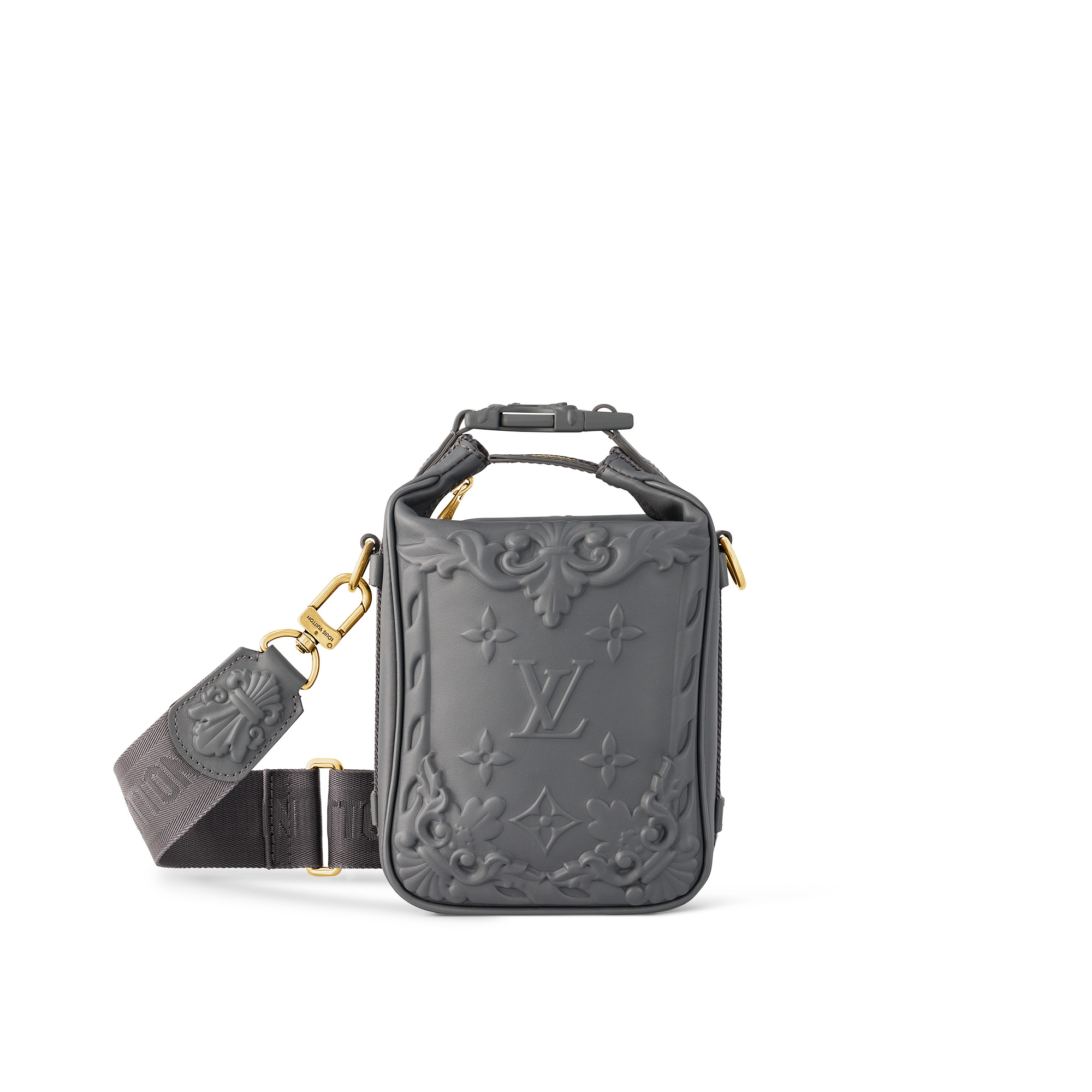 The worlds of luxury and streetwear come together in this Cruiser Messenger bag. Fashioned from calf leather, debossed with a pattern inspired by the decorative molding found in chateaus, it evokes Louis Vuitton’s links to French romanticism. The wide adjustable shoulder strap and the top handle offer carry options. Detailed Features - Dark Shadow Gray - Calf leather - Cowhide-leather trim - Textile lining - Aged-gold-color hardware - Zip closure - Buckle closure - Inside flat pocket - Strap:Not removable, adjustable - Strap drop: 20.1 inches - Strap drop max: 23.2 inches - Handle:Single Length: 6.5 inches Height: 9.4 inches Width: 3.9 inches