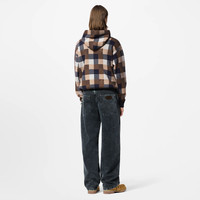 This sophisticated hoodie picks up the Western plaid theme from the FW24 Show in a luxuriously soft blend of cashmere and wool. ‘Marque L.Vuitton deposee’ signatures are integrated into the jacquard knit, while the adjustable hood has ornamental pearl and Monogram Flower drawcord stoppers. Elegant yet relaxed, this casual piece compliments the collection’s workwear silhouettes. - Relaxed Fit - ‘Marque L.Vuitton deposee’ signatures integrated in jacquard plaid - Flat shoelace-style drawcord - Resin pearl and Monogram Flower-embellished drawcord ends - Ribbed cuffs and bottom hem - Kangaroo pocket - Multicolor - 80% Wool, 20% Cashmere - Made in Italy