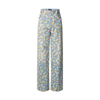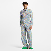 These wide-leg pants in washed organic denim are adorned with this season’s graphic LV Vers Damier motif incorporating Marque L.Vuitton Deposee signatures. Printed in primary colors, the motif recalls the flags on the UNESCO rooftop garden that formed the backdrop for the Spring-Summer 2025 show. A nubuck Damier jacqueron signs the back while pearl-effect rivets add a sophisticated twist. - Relaxed fit - Multicolor - 100% Cotton - Pearl-effect buttons and rivets in old gold setting - Classic 5-pocket denim construction - Printed signature motif - Signature jacqueron - Made in Italy
