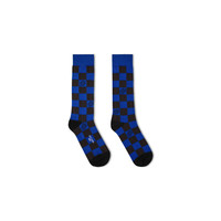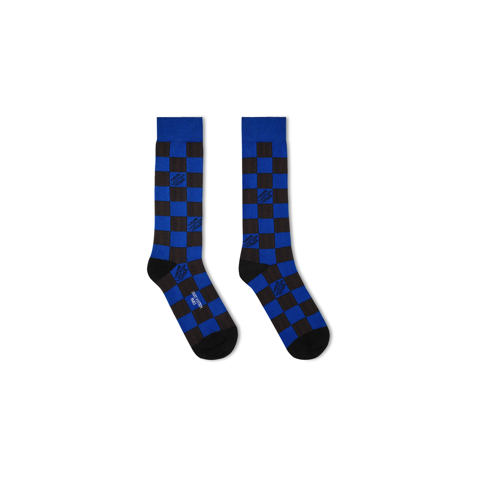 A colourful signature accent for the season’s silhouettes, here are the new Damier Pop Socks, offered in a duo of mood-lifting hues. Knitted from a comfortable cotton blend, they feature the House’s heritage check pattern along with the new 'Louis Vuitton Marque Deposee' trademark, introduced at the Men’s Spring-Summer 2024 Show. Length: 11.4 inches Height: 3.9 inches - Blue - 79% cotton, 18% polyamide, 3% elastane