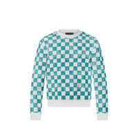 This graphic piece plays the capsule's playful Damier design on a classic sweatshirt shape. The screen-printed pattern incorporates hand-drawn effect penstrokes and a "Marque Louis Vuitton déposée" signature. Crafted from brushed-back felpa cotton, the piece features a ribbed bottom hem and cuffs. Detailed Features - 100% Cotton - Ocean - Classic Sweatshirt Shape - Model wears a FR M size - Model measurements : chest 32’’ / 81 cm, height 6'2’’ / 188 cm - Made in Italy