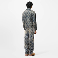 This classic denim jacket is elevated with the iconic 3D Damier with its textured jacquard and integrated ‘Marque L.Vuitton deposee’ signatures’. Crafted in washed denim, this latest iteration has a lived-in patina worthy of the FW24 Show’s trail-riding cowboy while pearl-effect buttons add a dandy twist. This piece has matching pants for a signature total look. - Regular Fit - Washed 3D Damier jacquard incorporating ‘Marque L.Vuitton deposee’ signatures - Pearl effect buttons - Two buttoned flap pockets - Indigo - 91% Cotton, 8% Polyester, 1% Elastane - Made in Italy