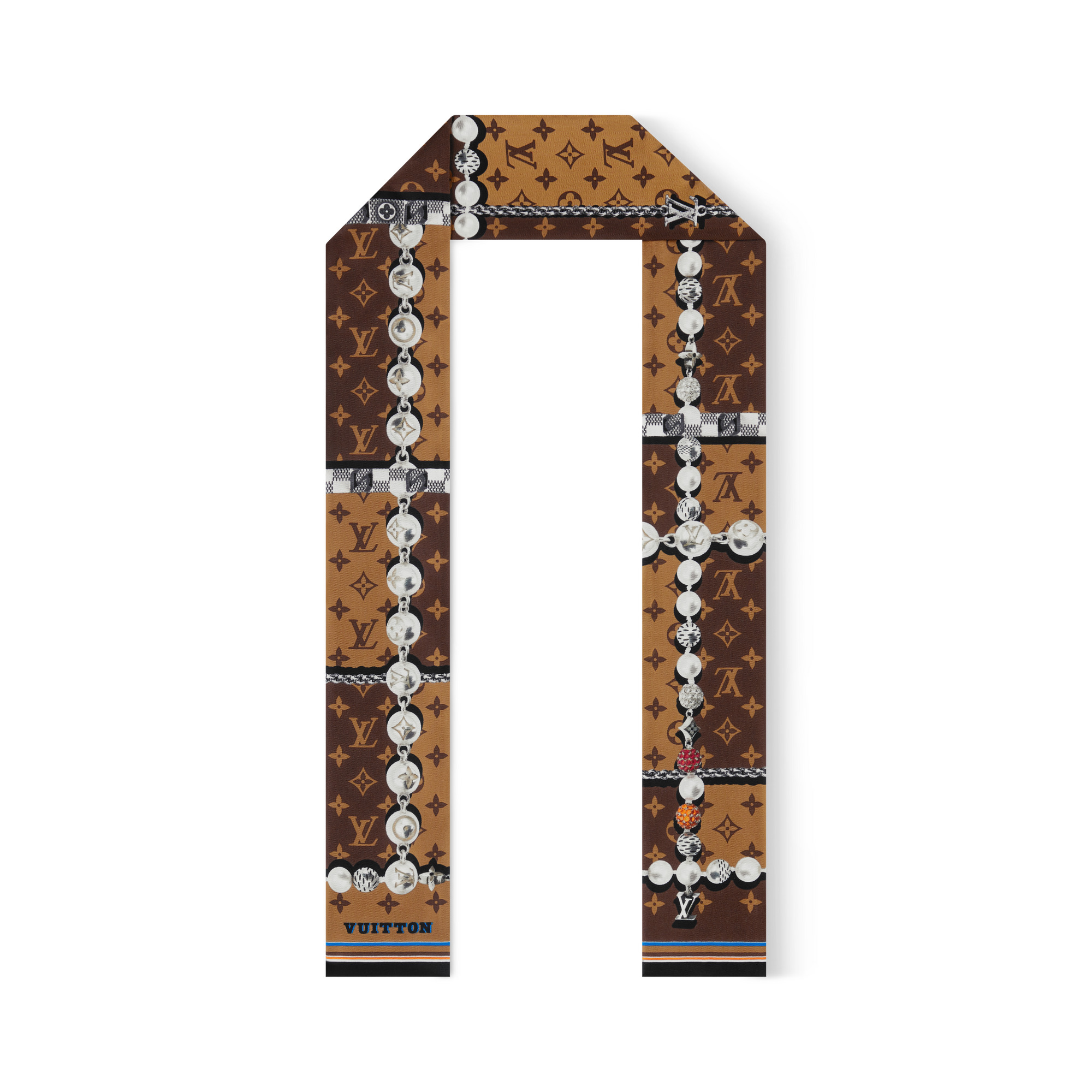 Fashioned from pure silk, the Dandy Monogram bandeau is printed with two-toned squares of the Monogram pattern, with a unique photographic treatment of jeweled chains. The combination of an iconic House signature in a neutral palette interspersed with glimmering jewelry adds to the long, slender bandeau's versatility. Length: 47.2 inches Height: 3.1 inches - Brown - 100% silk - Two-toned Monogram background - Made in Italy