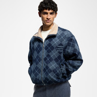 This graphic denim blouson is lined with warm fleece for fall. Its minimalist silhouette is elevated with a bleached-effect Damier Argyle motif, offering a modern interpretation of the classic pattern with a Damier twist. Marque L.Vuitton Deposee signatures adorn this casual piece, which has matching shorts for a trendy look. - Relaxed Fit - Laser Damier Argyle motif on indigo denim - Marque L.Vuitton Deposee signatures front and back - Chimney collar - Dropped shoulders - Padded sleeves - Piped front pocket - Elasticated cuffs and bottom hem - Fleece lining - Indigo - 100% Cotton - Made in Italy
