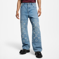 These jeans with an easy skate silhouette are elevated with creative details including Monogram signatures on the knee panels picked out with an edgy ripped treatment. Washed indigo denim enhances the casual vibe of this on-trend style, which can be paired with a matching jacket for a total look. - Relaxed Fit - Torn Monogram on the double knees - Indigo - 100% Cotton - Made in Italy