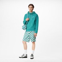 This smart hoodie is signed on the chest with a white embroidered Louis Vuitton signature on the chest, complete with a metallic pin. The contrasting white effect extends to a white cotton drawstring on the hood. Garment-dyed and crafted in a regular fit from brushed-back felpa cotton, it features kangaroo pockets and ribs at the bottom hem and cuffs. Detailed Features - 100% Cotton - Ocean - Regular Fit - Model wears a FR M size - Model measurements : chest 34’’ / 86 cm, height 6'3’’ / 191 cm - Made in Italy