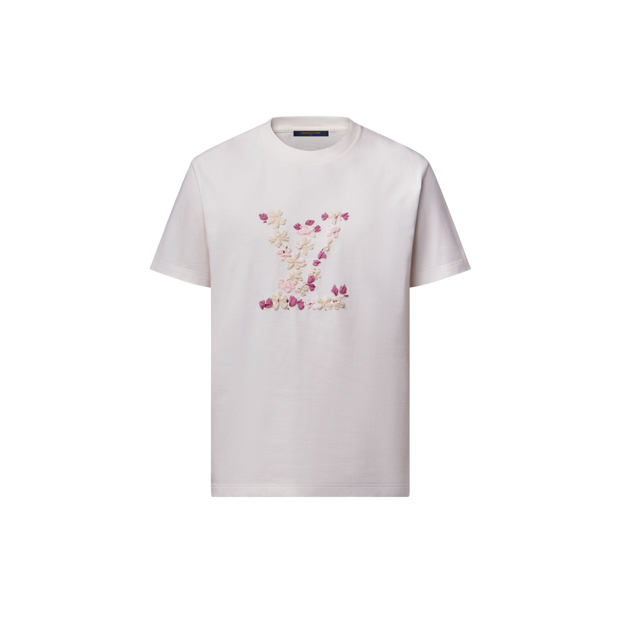 This soft white cotton T-shirt has a summery vibe. Inspired by the Fall-Winter 2025 show’s collaboration between Pharrell and Nigo, it references the latter’s native Japan with a delicate LV Blossom motif recalling the iconic sakura cherry trees. Meticulous hand-embroidery with pink-toned ribbons resembling flowers brings a sophisticated accent to this casual piece. - Regular fit - Milky White - 100% Cotton - Ribbed collar - Signature ribbon embroidery on the front - Signature leather patch on the back - Made in Italy