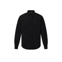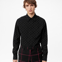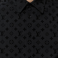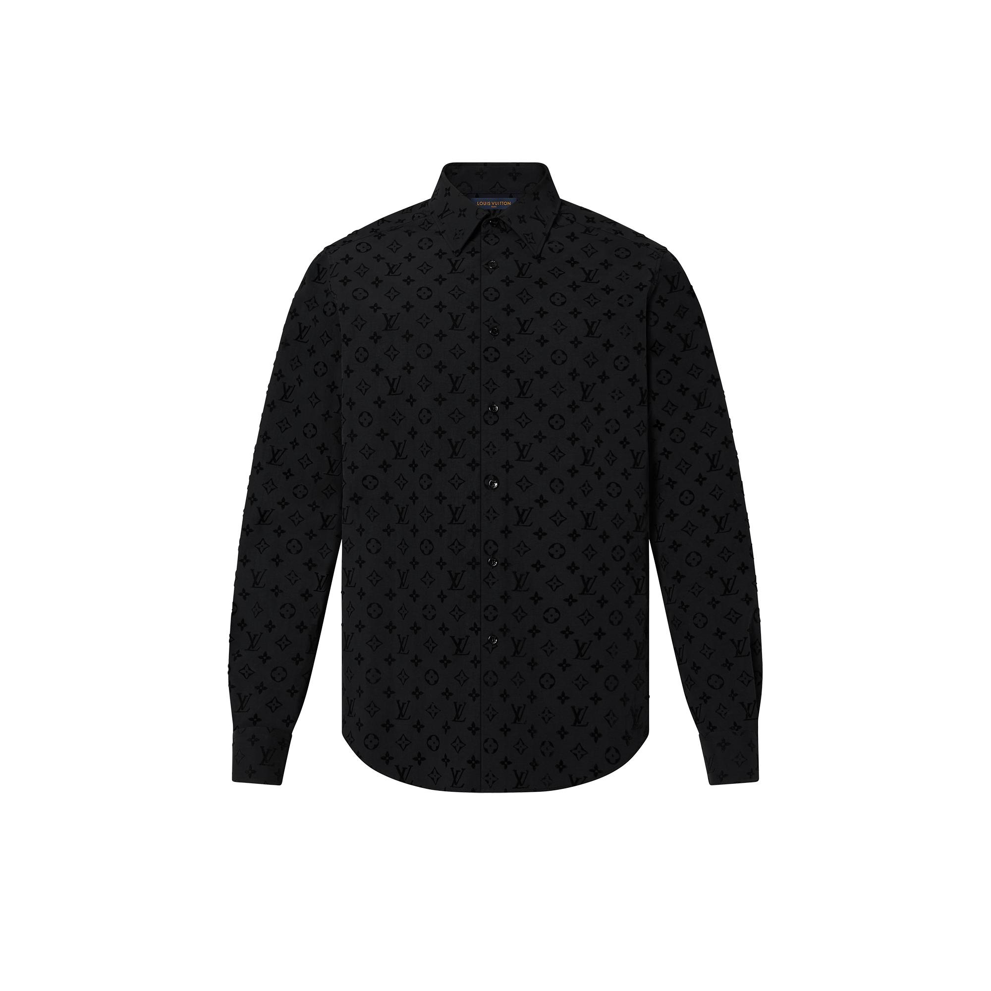 This shirt offers a stylish twist on the classic Louis Vuitton Monogram. The motif is reproduced as a flocked all-over signature with a velvet effect, on a regular-fitting shape. Details include a pointy collar and tonal metallic buttons. Detailed Features - 100% Polyamide - Black - Regular Fit - Model wears a FR M size - Model measurements : chest 36’’ / 92 cm, height 6’1’’ / 185 cm - Made in France