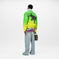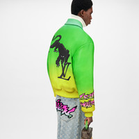 Crafted in a slightly loose fit, this eye-catching bomber showcases a fluorescent color-gradient effect. Air-brushed by hand onto LWG-certified calf leather, it is embellished with the season's new Louis Vuitton signature on the right cuff, padded panther and dancer patches, and a padded LV signature. Leather ribs, padding and a classic pointed collar add to the vibe. Detailed Features - 100% Bull Leather - Jasmin - Slightly Loose Fit - Model wears a FR 50 size - Model measurements : chest 32’’ / 82 cm, height 6'3’’ / 189 cm - Made in Italy