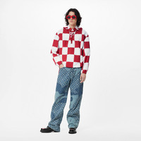 Cut in a regular fit, this piece plays the House's iconic Damier pattern as an all-over print motif. Tailored from recycled technical fabric, it is signed with a Louis Vuitton signature on the back. The laces at the neck are fastened with a stopper with the season's featured Heart logo. Detailed Features - 100% Polyamide - Garnet Red - Regular Fit - Model wears a FR 50 size - Model measurements : chest 34’’ / 86 cm, height 6'2’’ / 188 cm - Made in Italy