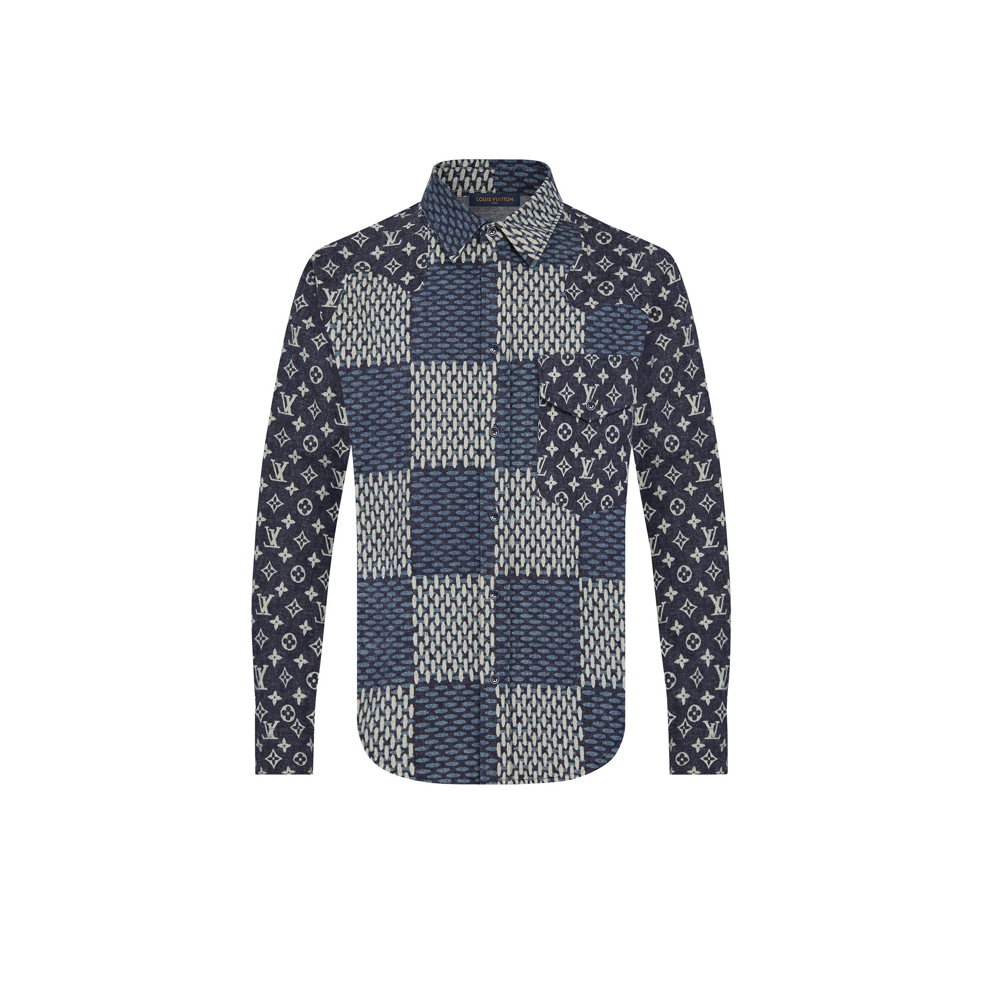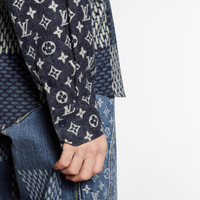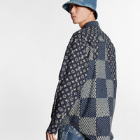 Created in partnership with Nigo, this eye-catching piece offers a patchwork-style blend of the Louis Vuitton Monogram with the season’s Giant Damier motif. Crafted from brushed cotton flannel with a warm hand feel, it is constructed from two contrasting fabrics. Where the two fabrics meet, a graphic wave detail echoes the season’s leather goods. Detailed Features - 100% Cotton - Blue - Loose Fit - Model wears a FR M size - Model measurements : chest 34’’ / 86.5 cm, height 6'1.5’’ / 186 cm - Made in Italy