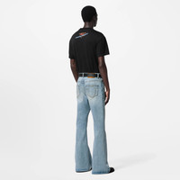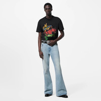 This black t-shirt in a light summery cotton is embellished with a Vuitton Motel motif from the FW24 Show. Printed and adorned with crystals, the playful signatures evoke the neon-lit cities of the American West. This fashion-forward piece brings a graphic twist to casual summer looks. - Regular Fit - Printed Vuitton Motel motif on the front - Printed Louis Vuitton signature on the back - Applied crystals front and back - Ribbed collar - Black - 100% Cotton - Made in Italy