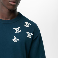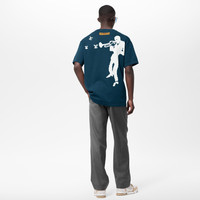 This playful crewneck t-shirt offers a riff on a recurring musical theme. On the back, an intarsia woven motif depicts a musician playing the trumpet. Scattered LV signatures float away as ‘notes’ that spread over the left shoulder and onto the front of the t-shirt. An inside-out silk intarsia label on the back completes the look. Detailed Features - 100% Cotton - Bleu Graphique - Regular Staple T-shirt Fit - Model wears a FR M size - Model measurements : chest 36’’ / 92 cm, height 6' 0½’’ / 184 cm - Made in Italy