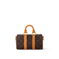 This Keepall Bandouliere 25 is crafted from supple calfskin with a slightly over-sized Monogram print, reinterpreting the orignial Monogram Canvas pattern. The aged leather trim completes the illusion. This exquisite city bag features a removable tag inspired by those found inside the House’s with original trunks. Length: 9.8 inches Height: 5.9 inches Width: 4.3 inches - Monogram - Calf leather - Aged natural cowhide-leather trim - Textile lining - Aged-gold-tone hardware - Main compartment with zip closure - Removable tag - Inside patch in leather - Strap:Removable, adjustable - Strap drop:21.7 inches - Strap drop max:24.8 inches - Handle:Double This reference is either Made in France, Spain, Italy or in the US.