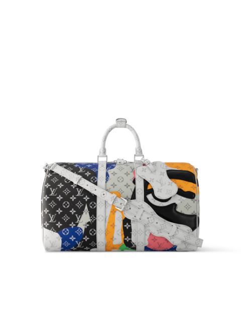 This Keepall Bandouliere 45 is fashioned from Monogram coated canvas and cowhide leather, as part of the LV Portrait capsule collection. The abstract patchwork treatment reveals a mysterious face over a Monogram motif. Two leather patches in the form of an eye, front and back, complete the portrait. Length: 17.7 inches Height: 10.6 inches Width: 7.9 inches - Multicolor - Monogram coated canvas and cowhide leather - Cowhide-leather trim - Textile lining - Palladium-color hardware - Zip closure - Leather-and-canvas charm - Large capacity - Double handle - Inside zipped pocket - 2 eye patches (front and back) - Strap:Removable, adjustable - Strap drop:14.2 inches - Strap drop max:19.7 inches - Handle:Double This reference is either Made in France, Spain, Italy or in the US.