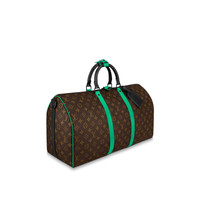 The classic Keepall now comes in Monogram Macassar canvas combined with cowhide dyed a vivid shade of green, one of designer Virgil Abloh’s emblematic colors. And it offers all the famous Keepall details, like the double reinforcement strips and the buckled-on leather name tag. An ultra-functional travel bag and a striking new take on the Monogram look. Detailed Features - Monogram Macassar coated canvas and Minty Green cowhide leather - Cowhide-leather trim - Textile lining - Black hardware - Large capacity - Zipped closure system - Inside zipped pocket - Removable name tag - Strap:Removable, adjustable - Strap drop: 14.2 inches - Strap drop max: 19.7 inches - Handle:Double - This reference is either Made in France, Spain, Italy or in the US. Length: 19.7 inches Height: 11.4 inches Width: 9.1 inches