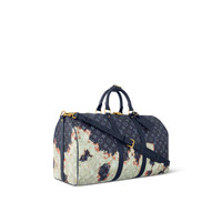 For Spring-Summer 2024, the classic Keepall Bandouliere 50 features a new look inspired by the edgy elegance of bleached denim. Monogram canvas in a rich shade of dark blue is combined with lighter shades in a natural pattern that evokes the flickering flames of a bonfire. A practical, spacious travel bag that makes a modern, fashion-forward statement. Length: 19.7 inches Height: 11.4 inches Width: 9.1 inches - Ink Blue - Monogram Bleach coated canvas - Cowhide-leather trim - Textile lining - Aged gold-color hardware - Double zipped closure with padlock - Inside zipped pocket - Removable name tag - Cabin size - Strap:Removable, adjustable - Strap drop:14.2 inches - Strap drop max:19.7 inches - Handle:Double This reference is either Made in France, Spain, Italy or in the US.