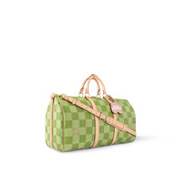 Classic and bold at once, the new Damier Golf coated canvas, with its golf-links inspired colorway, brings panache to the Keepall Bandouliere 50. The bag’s recognizable shape, emphasized by the cowhide-leather side bands and top handles, are signed with a pink Louis Vuitton flower charm. A removable leather strap adjusts for comfortable shoulder carry. Length: 19.7 inches Height: 11.4 inches Width: 9.1 inches - Green - Damier Golf coated canvas - Cowhide-leather trim - Textile lining - Polished gold-color hardware - Cabin size - Double zip closure - Padlock - Removable flower charm - Inside zipped pocket - Strap:Removable, adjustable - Strap drop:14.2 inches - Strap drop max:19.7 inches - Handle:Double This reference is either Made in France, Spain, Italy or in the US.