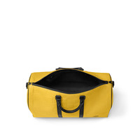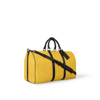 Creative Director Pharrell Williams reimagines the Keepall Bandouliere 50 in his Damier Scuba calfskin leather, a vibrant flash of yellow. The supple calfskin is embossed with the Damier pattern and backed with a layer of neoprene to give the bag a unique feel. The black-leather top handles and lateral bands underscore the sporty, nautical design. Length: 19.7 inches Height: 11.4 inches Width: 9.1 inches - Yellow - Damier Scuba calfskin leather - Cowhide-leather trim - Textile lining - Black-color hardware - Cabin size - Double zip closure system - Padlock - Removable name tag - Inside zipped pocket - Strap:Removable, adjustable - Strap drop:14.2 inches - Strap drop max:19.7 inches - Handle:Double This reference is either Made in France, Spain, Italy or in the US.