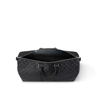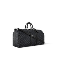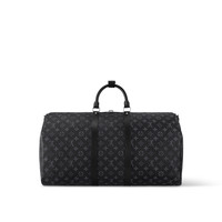 The beloved Keepall 55 Bandoulière now comes in our new iconic black and grey Monogram Eclipse canvas. Light, supple and always ready for immediate departure, the bag lives up to its name: those adept at the art of packing can easily fit a week's wardrobe into the generously sized (and cabin-friendly) Keepall 55. Detailed Features - Coated Canvas - Natural Cowhide Leather trimmings - Cotton Textile Lining - Silver brass pieces - Double zip closure - Removable leather ID holder - Padlock - Cabin size - Strap:Removable, adjustable - Strap drop: 14.2 inches - Strap drop max: 19.7 inches - Handle:Double - The reference is either made in France, Spain, Italy or in the US. Length: 21.7 inches Height: 12.2 inches Width: 10.2 inches