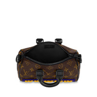 The LV Rubber look gives the Keepall XS a bold boost of color and style for fall 2021. Monogram canvas is adorned and protected by a latex appliqué across the bottom showing the House’s initials in eye-catching yellow and purple. With its double handle and adjustable strap, it’s a practical, easy-to-carry bag that makes a strong signature statement. Detailed Features - Monogram coated canvas - Cowhide leather trim - Textile lining - Black hardware - LV Rubber signature appliqué - Zipped closure - Strap:Not removable, adjustable - Strap drop: 21.7 inches - Strap drop max: 24.8 inches - Handle:Double - This reference is either Made in France, Spain, Italy or in the US. Length: 8.3 inches Height: 4.7 inches Width: 3.5 inches