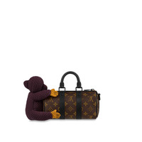 For the Spring-Summer 2021 Collection, Virgil Abloh unveils the Keepall XS bag, accessorized with a knit puppet of an LV friend from his “Zoom with friends” animated film. This small but functional bag is made from Monogram canvas, finished with matte-black leather. A touch of florescent orange along the edges of the zipper spices things up. Detailed Features - Monogram coated canvas - Cowhide-leather trim - Textile lining - Zip closure system - Strap:Removable, adjustable - Strap drop: 21.7 inches - Strap drop max: 24.8 inches - Handle:Double - The reference is either made in France, Spain, Italy or in the US. Length: 8.3 inches Height: 4.7 inches Width: 3.5 inches