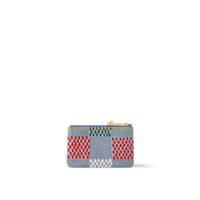 Made from LV Vers Damier Denim, the Key Pouch is adorned with an over-sized version of the Damier checkerboard pattern, including the "Marque Louis Vuitton Deposee" found on the original design. Perfect for keys, it can also be used to hold cash and cards. A small hook-and-chain enables it to be attached to a belt or bag. Length: 4.7 inches Height: 2.8 inches Width: 0.6 inches - Multicolor - LV Vers Damier Denim - Textile lining - Silver-toned hardware - Zip closure - Key ring - Chain with hook This reference is either Made in France, Spain, Italy or in the US.