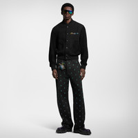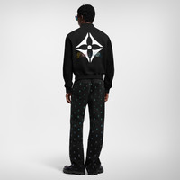 This elegant take on the varsity jacket comes in sober black tones, with the sleeves and pockets crafted from nubuck leather. The wool body is embellished with a Louis Vuitton signature in an elegant cursive script in graduated colors on the chest, while a large white embroidered Monogram Flower adorns the back beneath a pearly embroidered signature. - Regular fit - Black - 50% Goatskin, 50% Wool - Ribbed cuffs, hem and collar - Nubuck sleeves - Wool body - Fully lined - Black snap-button fastening - Nubuck leather patch pockets - Multiple signatures on front and back - Made in Italy
