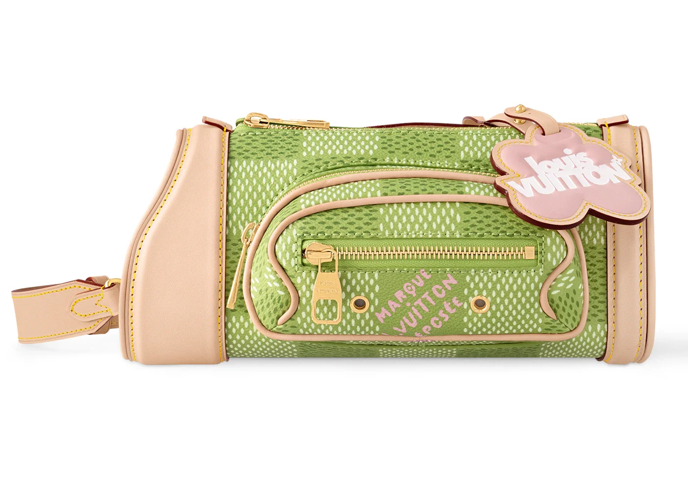 Please Note: Dust bag and box are not required for this accessory. - Dimensions 10.4H 4.7W 3.3D Strap 21.7 - Material Coated Canvas - Retail Price 3450 - Color Green Damier Golf - Hardware Gold-tone - Release Date 2024-03-21 - Style N40635 - Included Accessories Removable Flower Charm, Removable and Adjustsable Strap - Season SS24 - Base Model by Tyler, the Creator Mini - Base Model Variety Golf Bag - Color Generic Green - Depth 3.3 - Featured false - Height 10.4 - Requester Rachel M - Strap Drop 21.7 - Styles Accessories - Uploaded By ML - Width 4.7