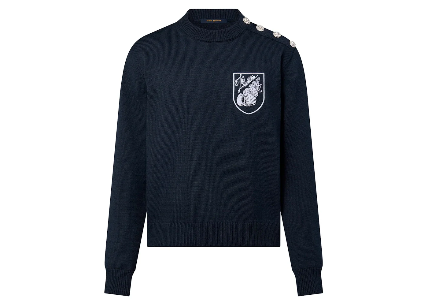 Louis Vuitton Embroidered Cotton-Blend Crewneck Navy Blue