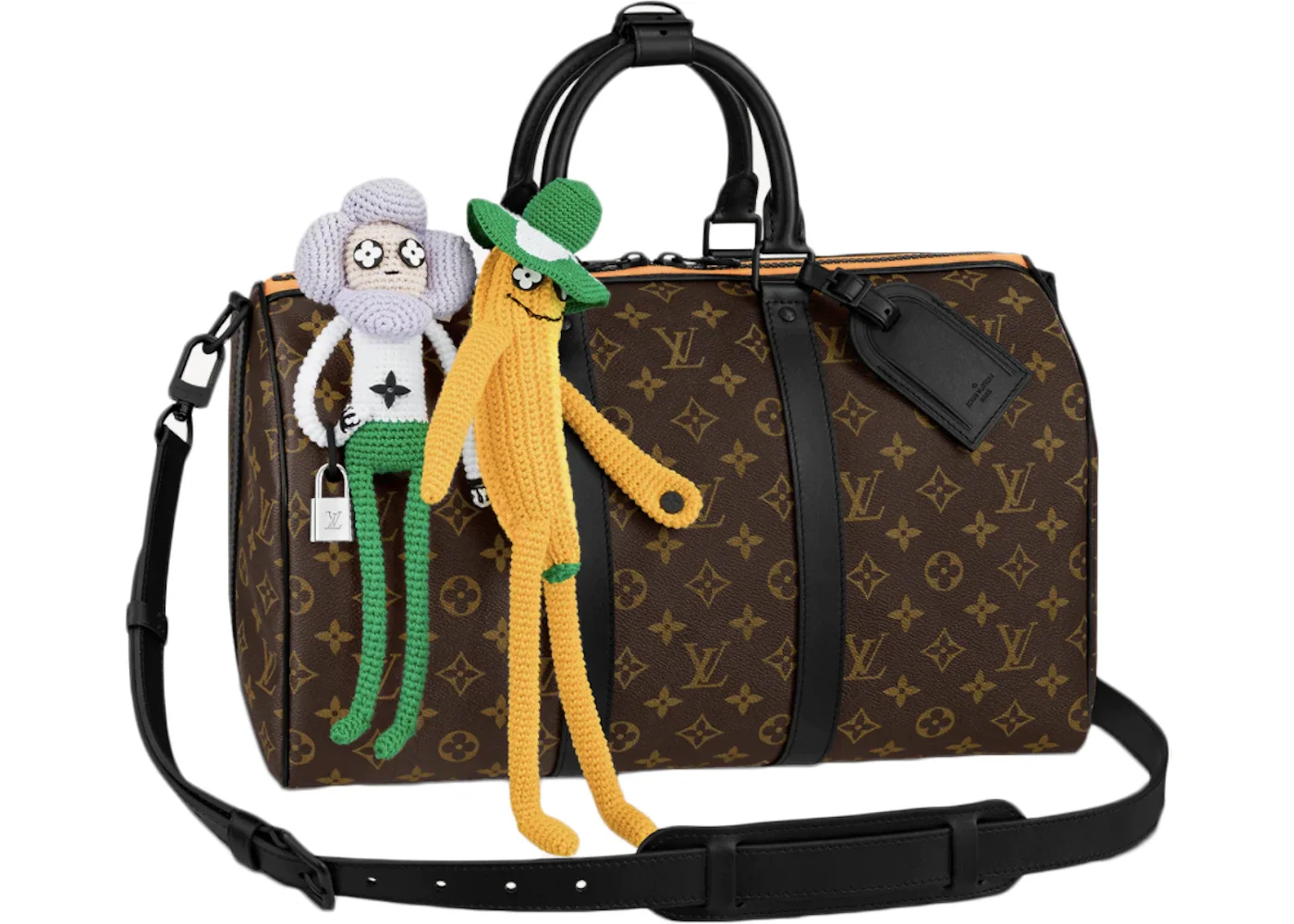 Please Note: This item comes with a dust bag, the box is not required. - Dimensions 10.2H 16.5W 7.9D Strap 21.7 - Material Coated Canvas - Retail Price 5550 - Hardware Black-tone - Size 40 - Style M45609 - Included Accessories Strap, Lock, Key, Lock Cover, Luggage Tag, Handle Strap, Dust Bag - Season SS21 - Base Model Keepall - Base Model Variety Bandouliere - Color Generic Brown - Depth 7.9 - Featured false - Height 10.2 - Interior Color Black Canvas Interior Lining - Strap Drop 21.7 - Styles Duffle,Travel - Width 16.5