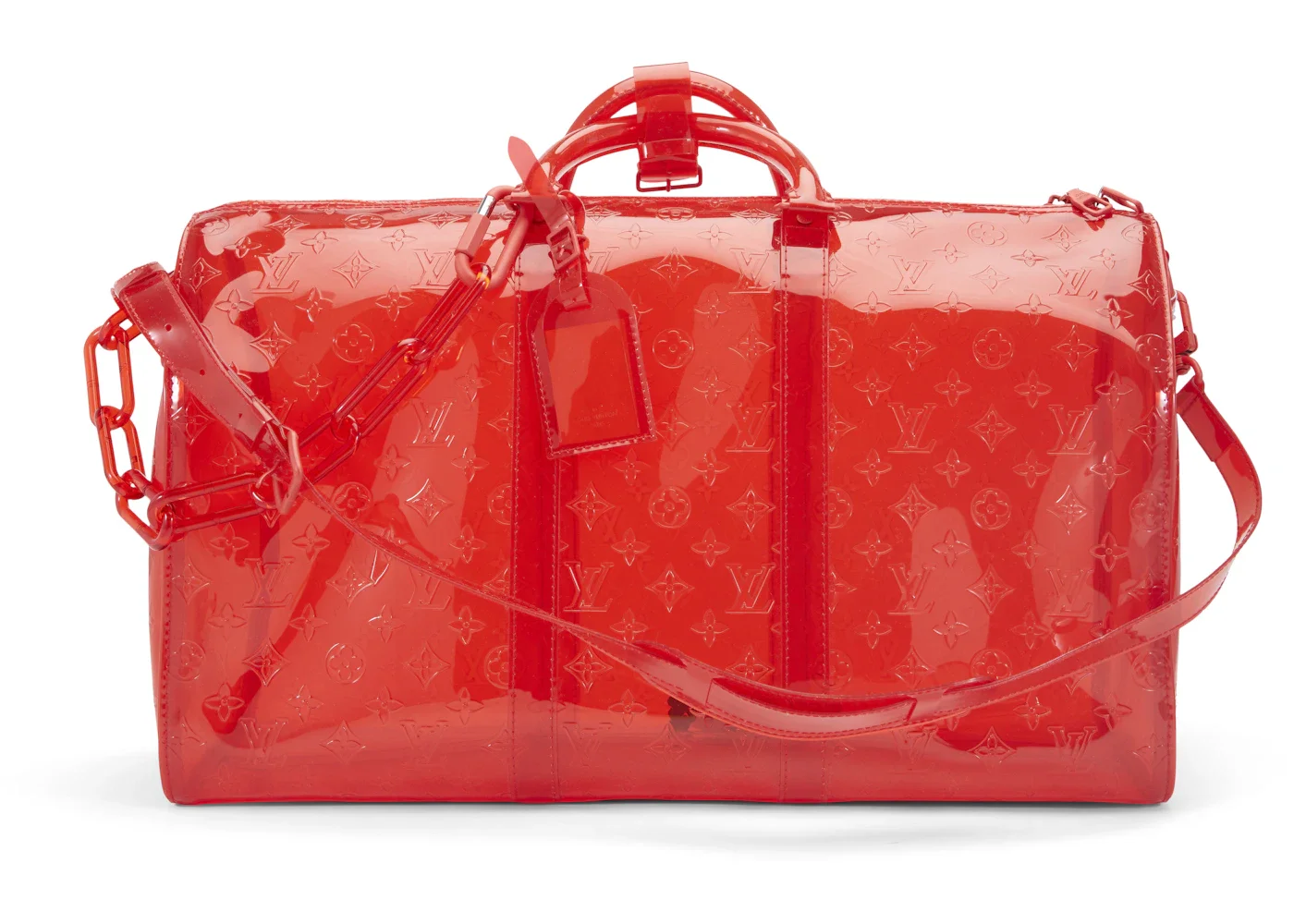 Virgil Abloh can do it all. When he’s not dropping iconic sneakers or DJing shows across the world, the founder of Off-White finds the time to release key pieces from his first collection as Louis Vuitton’s new Men’s Artistic Director. These one-off October pop-up shops in London and Shanghai provide just a taste of what will come in his Spring Summer 2019 debut collection. The handbags and accessories are a union of luxury and street: staple items turn holographic, miniature trunks can be worn as purses, and duffle bags are even transparent. Still featuring the signature LV monogram, a splash of Virgil can’t go unnoticed in the collection’s orange chain accents. Although the pop-ups doors have closed, StockX can provide you with legendary items from Abloh’s first LV collection.Please Note: This item comes with a dust bag, the box is not required. - Material PVC - Retail Price 3450 - Color Red - Hardware Silver-color/Tone-on-Tone - Style M53274 - Included Accessories Strap, Lock, Key, Lock Cover, Luggage Tag, Handle Strap, Chain, Dust Bag - Season SS19 - Base Model Keepall - Color Generic red - Depth 11.4 - Featured false - Height 8.7 - Pattern Embossed Monogram - Styles Duffle - Width 19.7