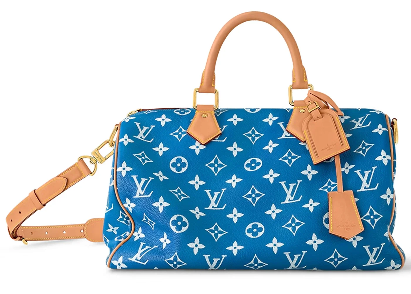 Please Note: This item comes with a special dust bag font color will match the bag, interior pillow included, the box is not required. - Dimensions 10.2H 15.7W 9.1D Strap 23.6 - Material Soft Calfskin - Retail Price 11100 - Color Blue - Hardware Gold-tone - Release Date 2024-01-04 - Style M24418 - Included Accessories Removable Leather Pouch, Name Tag And Key Bell, Removable Strap, Padlock And Key, Color Matching Dust Bag, Pillow - Season SS24 - Base Model Speedy 40 - Base Model Variety Bandouliere - Color Generic Blue - Depth 9.1 - Featured false - Height 10.2 - Pattern Monogram Leather - Requester Rachel M - Strap Drop 23.6 - Styles Top Handle - Uploaded By ML - Width 15.7
