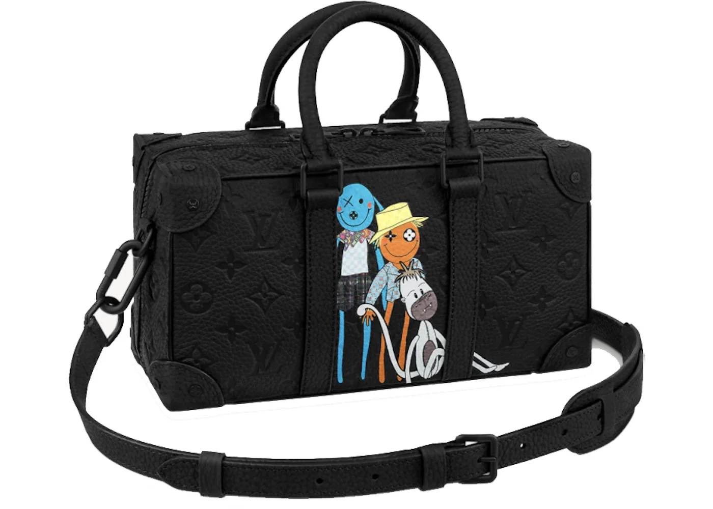 Please Note: This item comes with a dust bag, the box is not required. - Dimensions 4.5H 10.6W 5.9D - Material Taurillon Leather - Retail Price 4850 - Hardware Black-tone - Style M57410 - Included Accessories Strap, Dust Bag - Season SS21 - Base Model Speedy - Color Generic Black - Depth 5.9 - Exterior Variant Soft Trunk - Featured false - Height 4.5 - Interior Color Black Textile Interior Lining - Styles Top Handle - Width 10.6