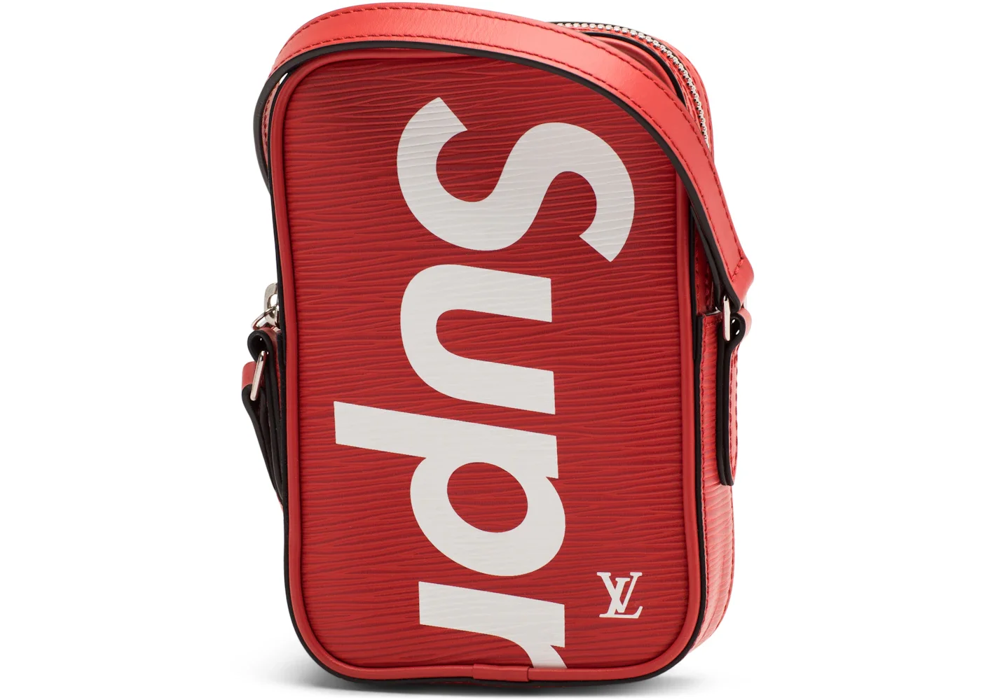The Louis Vuitton x Supreme Danube PPM in water resistant Epi leather is smaller than the PM but still holds the iconic shape of the classic Louis Vuitton Danube. The Danube, named after Europe’s second longest river features "Supreme" in white Futura Heavy Oblique font. It has has silvertone hardware, a long adjustable canvas strap, black microfiber lining, plus all the style that Supreme has to offer. It comes in an iconic red Epi leather exterior, which was created in 1985 as the fashion brand’s first permanent leather collection. It goes through a special dying process with plant extracts which allows for vivid colors like this redn to shine through. 140 years after Louis Vuitton was founded in Paris, Supreme, called the "coolest streetwear brand in the world right now" by GQ made its debut in New York City. Their highly anticipated collaboration debuted at Paris Men’s Fashion Week in January 2017 and includes clothing, accessories, shoes, trunks and leather goods. The Louis Vuitton x Supreme Danube Epi PPM in red Epi leather is an ideal crossbody bag for day or night.Please Note: This item comes with a dust bag, the box is not required. - Retail Price 1710 - Color Generic Red - Featured false - Styles Crossbody