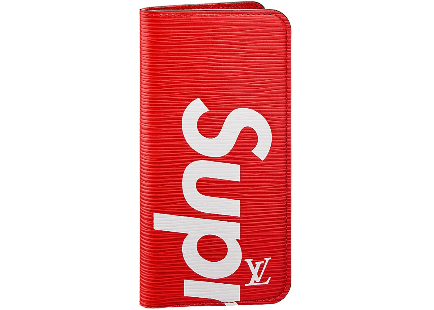 This authentic Louis Vuitton x Supreme iPhone 7 Folio Epi Red is a stylish case is finely crafted of red epi leather and features the Supreme logo in white and is styled after the iconic Louis Vuitton trunk with the flair of Supreme. The case holds an iPhone 7 perfectly with a red microfiber interior. This is a perfect case that is as practical as it is chic from Louis Vuitton and Supreme and it is available to buy or sell online at Stockx. Back to the roots of travel, the Louis Vuitton x Supreme iPhone 7 Plus Folio Epi Red is the pure expression of our creativity and savoir-faire: resistant and extra-slim, the essential accessory to bring everywhere. Louis Vuitton has always shown the ability to understand and anticipate the needs of a changing world, with breakthrough innovations. With the iPhone 7 & 7+ Folio, Louis Vuitton introduces an exclusive technology: the gecko-inspired adhesive. The gecko is a lizard that has a smart adhesion on any surface thanks to a natural strength that can be 600 times more powerful than our common adhesive tape. Highly innovative: the functional adhesive surface ensures a secure and easy way to protect the device. This iPhone case serves more than a protective cover as it can also double as a fashionable accessory that you can bring around. A coveted phone accessory piece to own, this Louis Vuitton iPhone case is highly anticipated with its fashion-forward style. Donning a fiery color of red that has long been associated with passion and desire, this iPhone cover is further adorned with the LV and Supreme logo in white.Please Note: Dust bag and box are not required for this accessory. - Retail Price 415 - Color Generic Red - Featured false - Styles Tech Accessories