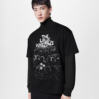 This soft, black, slightly drop-shouldered t-shirt features a screen-printed monochrome graphic. The playful image depicts a concert, in which Louis Vuitton has become the name of a band. Signature details include inside-out stitching and an inside-out label on the back. Detailed Features - 100% Cotton - Black - Regular fit - Model wears a FR M size - Model measurements : chest 33’’ / 85 cm, height 6’’/ 183 cm - Made in Italy