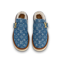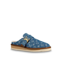 The LV Cozy Mule in Monogram denim was inspired by the collaboration between Louis Vuitton Artistic Director Virgil Abloh and Japanese streetwear designer Nigo. This version in blue Monogram denim comes with a snug shearling lining. It is finished with an extremely comfortable, lightweight micro and rubber outsole. Detailed Features - Navy Blue - Monogram denim - Shearling lining - Ultra-light micro and rubber outsole - Louis Vuitton-engraved buckle - Made in Italy