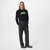 This black long-sleeved t-shirt has an inside-out construction and ribbed cuffs. It is distinguished with a bright Louis Vuitton signature on the chest, which has been double screen-printed to enhance the intensity of the colors— magenta, yellow and cyan—which fade into each other. An inside-out label at the back completes this piece. Detailed Features - 100% Cotton - Black - Classic Fit - Model wears a FR M size - Model measurements : chest 32’’ / 82 cm, height 6’’ / 183 cm - Made in Italy