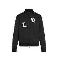 This sporty track top combines Louis Vuitton signatures with innovative fabric technology. The front features a textured L and V embroidered in wool, while knitted woolen bands on the sleeves are adorned with a textured LV Flower motif. The outside’s shiny technical yarn contrasts with the knitted details; the inside is in soft cotton. Detailed Features - 49% Polyester, 42% Cotton, 9% Polyamide - Black - Model wears a FR M size - Model measurements : chest 32’’ / 81 cm, height 6'2’’ / 188 cm - Made in Italy