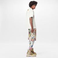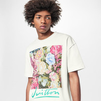 This summery, lightweight cotton jersey t-shirt features the collection's LV Flowers Tapestry motif in a digitally printed panel on the front, overlaid with a handwritten Vuitton signature in a flash of bright color. A ribbed collar adds soft definition around the neckline, while a silk Louis Vuitton inside-out label adds a finishing signature on the back. Detailed Features - 100% Cotton - Milky White - Classic Fit - Model wears a FR 50 size - Model measurements : chest 32’’ / 82 cm, height 6’’ / 183 cm - Made in Italy