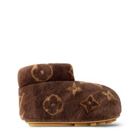 The LV Footprint low boot was one of the statements of Louis Vuitton's Spring-Summer 2024 men's show, designed by Pharrell Williams. The upper is crafted from soft, cozy shearling, which is printed with an oversized Monogram pattern. The rubber outsole was inspired by a bear's paw print and is decorated with House signatures. - Brown - Shearling - Rubber outsole with a bear paw-print design - LV Initials and Monogram Flowers on the tread - Made in Italy