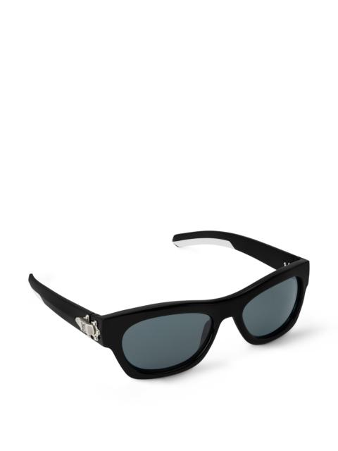 The LV Frog Round Square sunglasses celebrate contemporary references cherished by Pharrell Williams and Nigo and the heritage that cemented Louis Vuitton as a house built on craftsmanship. The shape is influenced by Japanese street style and rockabilly subculture, while at the hinge, silver-toned frog locks in an antique finish recall the House's trunk-making origins. - Round-square shape - Black - Acetate frame - Black lenses - Signature hardware - Made in Italy - Transmittance:12% - UV Protection:100% - Filter Category:3