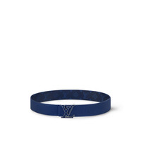 The LV Initiales 40mm reversible belt gets an eye-catching update for the season. This accessory fastens with the iconic LV Initials buckle in gleaming hardware, which is inlaid with Taïga leather that matches the brightly colored strap. The Monogram pattern adorns one side of this reversible belt, while the other side is plain for a different styling option. Detailed Features - Width: 1.6 inches/4 cm - Cobalt Blue - Reversible - Monogram canvas strap recto side - Taïga calf leather strap verso side - LV Initials buckle inlaid with Taïga leather Length: 35.43 inches Width: 15.75 inches