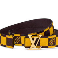 From the Men’s Spring-Summer 2024 Show comes this LV Initiales 40mm Reversible Belt. Presented in Damier Pop canvas in a fashionable range of colours, the strap reverses to brown calf leather for a more understated look. Secured with a golden LV Initiales buckle and the new 'Louis Vuitton Maison Deposee' trademark, it makes an eye-catching signature statement. Length: 35.4 inches Width: 15.7 inches - Yellow - Damier Pop coated canvas - Calf leather - Gold-colour hardware - Made in Spain