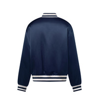 This baseball blouson elevates a classic American silhouette in an elegant navy blue. The glossy navy technical fabric is ennobled with crystal-embroidered patches, featuring the LV Lovers signature across the chest and an LV Eiffel Tower on the left sleeve. Lightly padded, this piece is perfect for casual day to evening looks. - Relaxed Fit - LV Lovers crystal-embroidered front patch - Embroidered LV patch with wavy Eiffel Tower on left sleeve - Contrasting ribbed collar, cuffs and bottom hem - Two piped front pockets - Snap button closure - Naval Academy - 100% Polyamide - Made in Italy