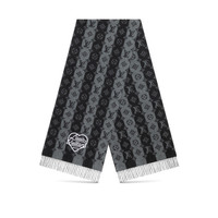 Streetwear and heritage fuse seamlessly in this luxurious LV Made Stripe scarf, co-designed by Virgil Abloh and Nigo. It showcases an allover Monogram pattern that serves as a background for two eye-catching appliqués. This unconventional style is cut from pure cashmere using generous proportions, making it a perfect choice for wintery days. Detailed Features - 13.8 x 78.7/35 x 200 cm - Gray - 100% cashmere - Allover Monogram pattern - Louis Vuitton Made and duck patches - Fringe finish Length: 75.2 inches Height: 15.7 inches