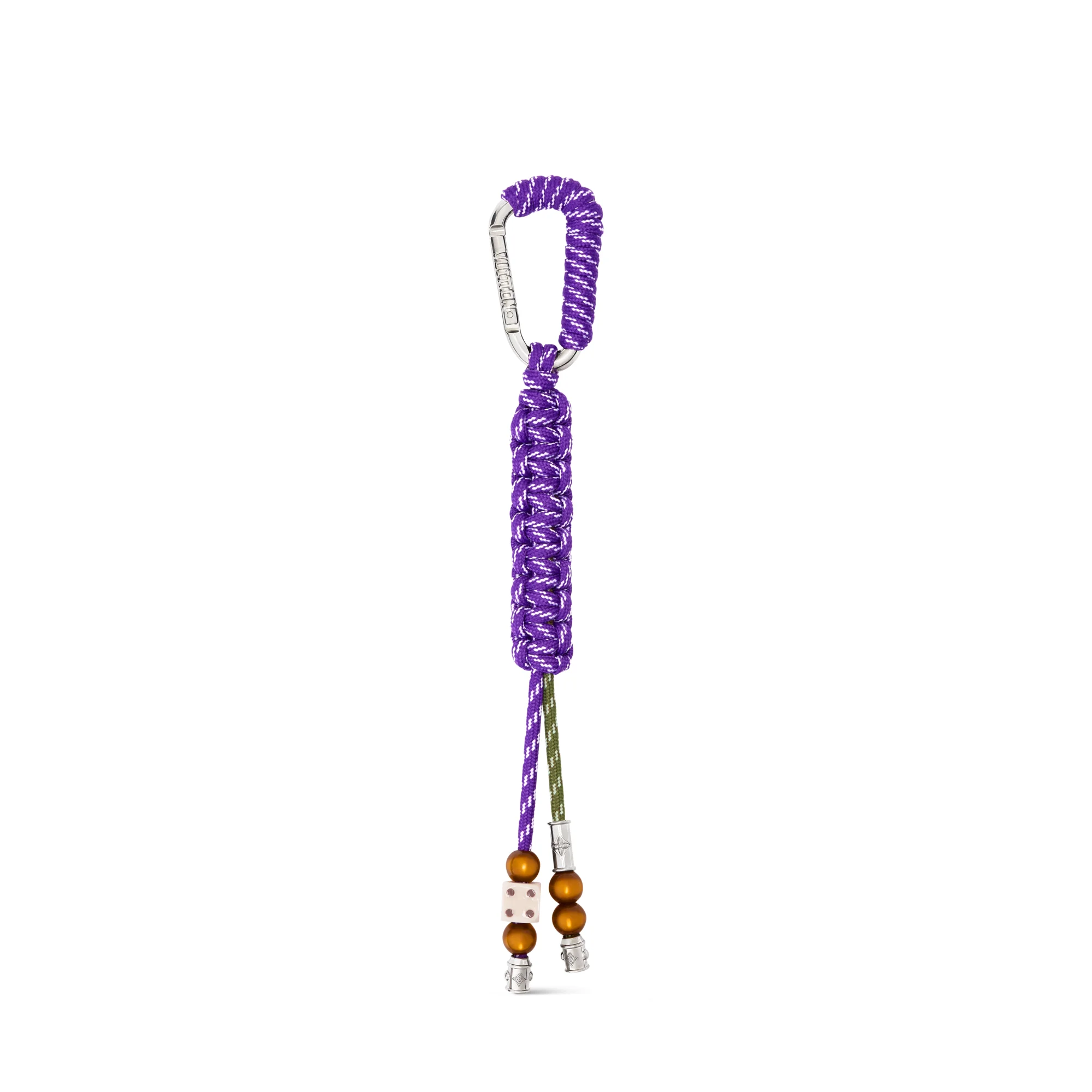 The LV Mousqueton is the perfect product that combines both functionnaility thanks to the hook system and style. The "VUITTON" signature on the the silver-toned carabiner hosts a colorful purple and khaki ropes. - Purple - Rope - Silver-toned metal - Colored beads - Carabiner closure - Dual function as bag charm and key ring - Made in Italy
