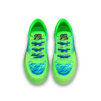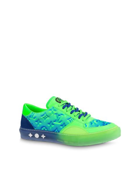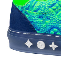 Part of the Spring-Summer 2022 show collection, this version of the LV Ollie richelieu sneaker is crafted from Monogram-embossed, grained calf leather with a colorful tie-dye effect. This effect extends to the transparent rubber outsole, which is decorated with Monogram Flowers. Bicolor double laces and an LV flame logo on the tongue complete this design. Detailed Features - Green - Monogram-embossed grained calf leather - Double laces - Transparent rubber outsole - LV flame logo on the tongue - Monogram Flowers on the outsole - Made in Italy