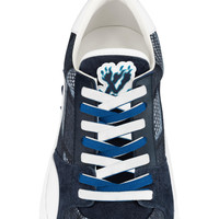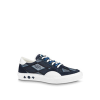 This version of the LV Ollie richelieu sneaker combines denim and suede calf leather to create the season's key diamond Damier pattern. Inspired by the skate universe, this model has a lightweight rubber outsole and bicolor double laces. Virgil Abloh's LV "fire" logo signs the tongue, while the back is embossed in silver with the Louis Vuitton script signature. Detailed Features - Blue - Mix of materials - Bicolor double laces - Rubber outsole - LV Initials on the tongue - Louis Vuitton Paris insert on the side - Louis Vuitton script signature on the back - Monogram Flowers on the outsole - Made in Italy